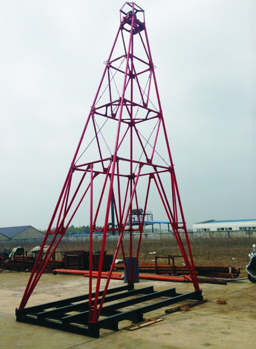 SGX-8型鉆塔型用于配合300米至600米巖忿鉆機鉆進孔深500米以內,作傾角75°-90°鉆孔升降鉆具直、斜兩用鉆塔。其特點為具有承載能力適中,結構緊湊、合理,拆裝方便、搬運成本低等特點,適合XY-2、 XY-3型巖芯鉆的配套使用。